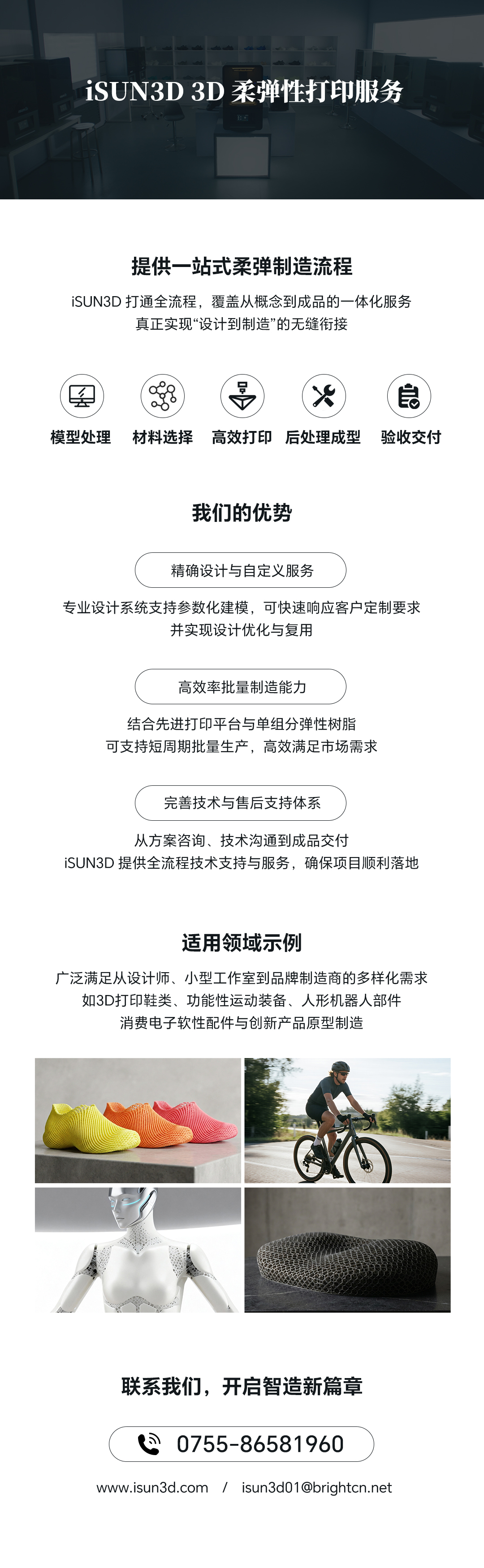 2025年12月26日,iSUN3D 柔弹性制造打印示范中心在武汉正式投入使用。2026年,iSUN3D打印中心将扩建至1000台高速光固化打印机,柔弹性产品的量产能力与交付效率将显著提升。